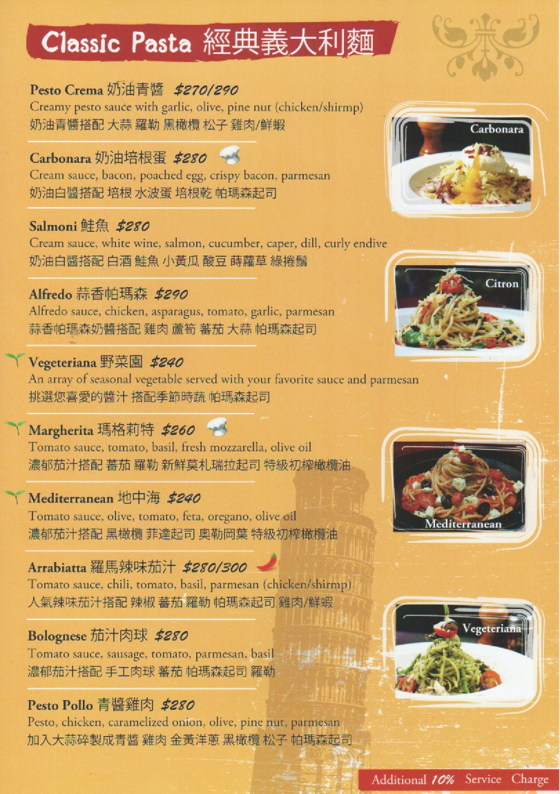 ●包含義麵、法式風味甜品及風胃前菜,給你精巧及意想不到的異國時尚